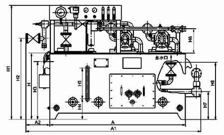 4、型号后带“A”者为有压力罐的装置,可满足发生意外事故或突然停电时,储存在压力罐中的油液可作临时压力油源向系统短时供油,但需注意压力罐上的一般单向阀应水平安装,不得向下安装(对较小的旋启式单向阀允许向上安装),附图中应作相应改变。