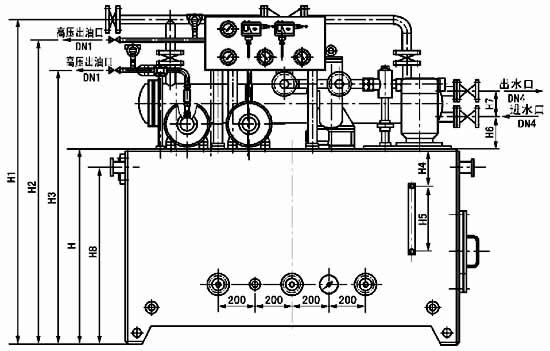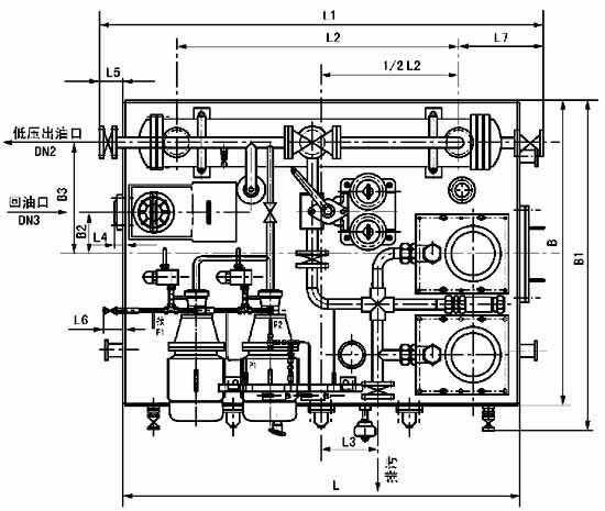 双高压高(低)压稀油站的主要特点为一套稀油站有二根高压输出管道,可满足二个高压润滑点的需要,其他和普通高(低)压稀油站相同。