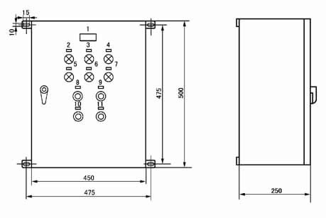 控制箱能发出“供油时间延长”、“油箱液位低”、“超负载运转”等故障信号。箱内设有一组外部接点,可向主机或主控室发送系统运转状况(停止、运转、故障)信号。